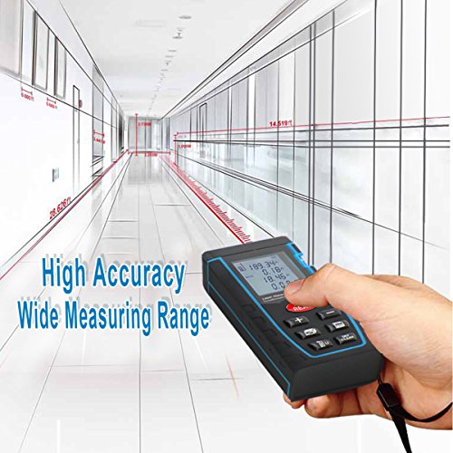 - Easy targeting with bright laser pointer, the laser distance measure makes field work easier and safer. Ideal for home, construction, industries, large areas such as rooms, apartments, buildings, real estates, factories, warehouses.