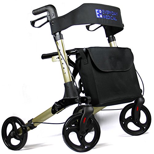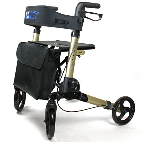 Everyday Medical Rollator Walker With Seat and Basket: The Everyday Medical collapsible rolling walker features a comfortably padded seat and convenient front basket. Constructed of lightweight steel, this lightweight rollator walker offers great maneuverability and stability. Equipped with large 8" casters to tackle all kinds of terrain, as well as easy to-operate ergonomic hand brakes, and a fold-strap for easy storage and transport. Designed to meet all your patients’ fundamental mobility needs. Supports patient weights up to 500 pounds. Features: - Padded seat