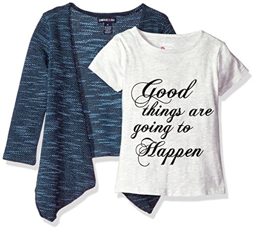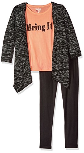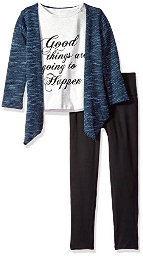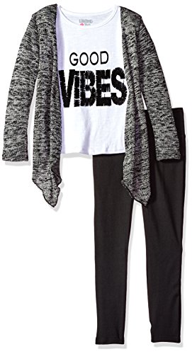 Textured knit cardigan with printed short sleeve t-shirt, and legging pant
