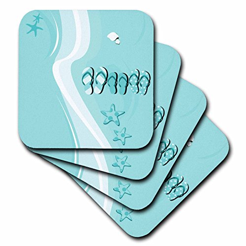 3dRose cst_125810_2 Light Blue and White Beach with Flips Flops and Star Shells Soft Coasters (Set of 8)