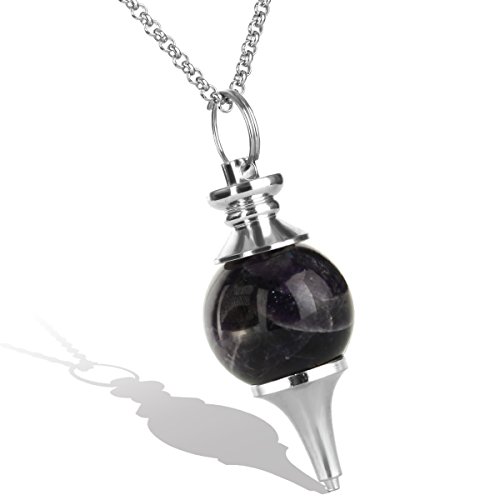 - Title : JewelrieShop Unisex Pendulum Dowsing Crystal Quartz Ball Power Healing Chakra Gemstone Balancing Stone Reiki Pendant Necklace, 24 Inch Stainless Steel Chain (04. Syn. Purple Amethyst)