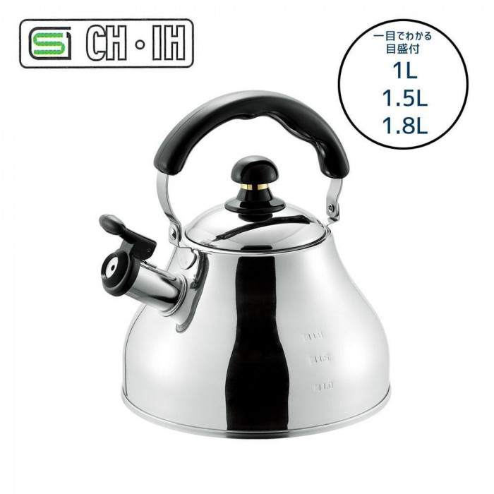 | お湯が沸くと音で知らせてくれる、ステンレス製の笛吹きケトルです。握りやすいハンドルと、お手入れがラクな広口設計です。ガス火はもちろんIH100・200Vにも使用できる、オール熱源対応です。 |