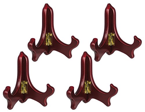 Wood Easel Plate Holder Folding Display Stands - Rich Dark Brown Mahogany - Premium Quality - Pack of 4 Pieces - 4 Inch