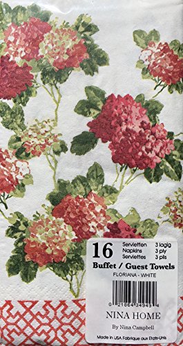 Nina Campbell Home Set of 16 Guest Towels Buffet Hostess Paper Napkins, Pink Hydrangea