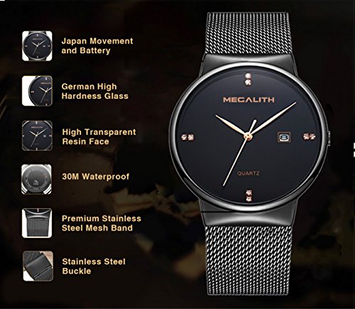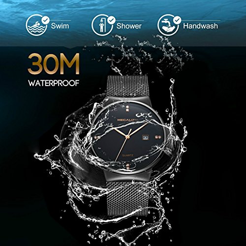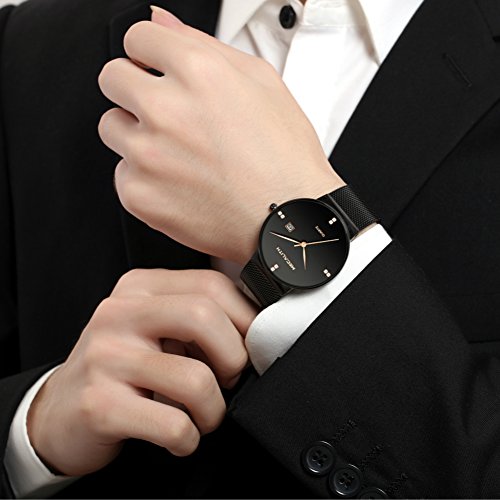 DURABLE and COMFORTABLE: Japan quartz movement and battery provide accurate time keeping and a service life of more than 3 years, certainly the battery is also easy to be replaced. Suitable watch weight, luxury black stainless steel Mesh Bracelet and smooth Mesh Stainless Steel Bracelet surface, all these let this watch super elegant and comfortable to wear. What's more, a free link remover is provided with this watch, so you can adjust the band length at home by yourself after reading instructi