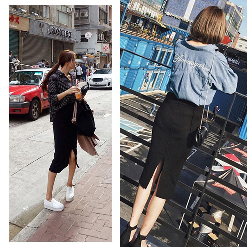 センタースリット(スリット丈26cm)・ひざ下丈・ブラックのタイトスカート♪