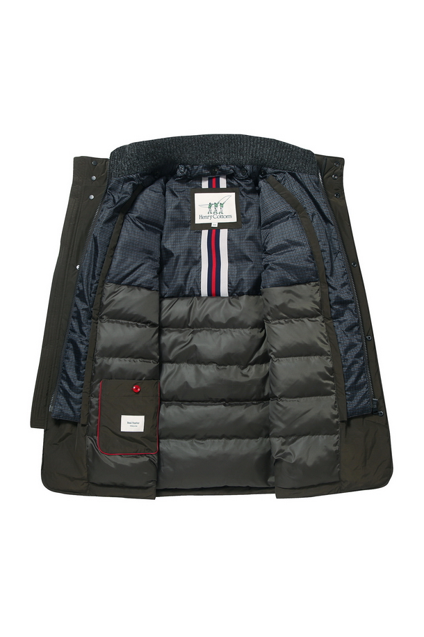- 하이넥 디자인에 스냅 버튼 인 지퍼 여밈으로 단정함.