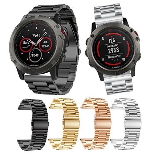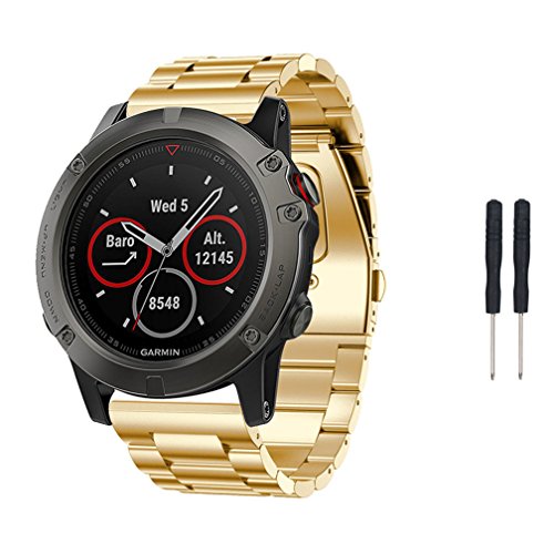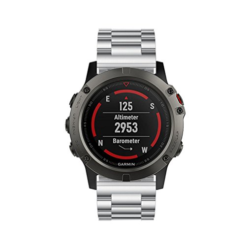 Studio : MoreToys Publisher : MoreToys Binding : Misc. Product Description Features: * Personalized Your Garmin Garmin Fenix 5X Multisport Watch with this refined replacement wrist band. Comparable to original Garmin Watch Band. * Band can be installed onto Garmin Watch Lugs(not included) on both ends precisely and securely. Easy and direct installation and removal. * An innovative pin-and-tuck closure ensures a clean fit. Metal parts made with hypoallergenic nickel free stainless steel. * Stainless Steel with smooth finish for a sporty look. Comfortable and durable. * Fits 5.8"-9.6" (145mm-240mm) wrist. * Lifetime warranty. Specifications: * Special designed for Garmin Fenix 5X * Material: Stainless Steel * Band Wide: 26MM * Band Length: 5.8"-9.6" (145mm-240mm) Note: * Compatible with Garmin Fenix 5X Only, Not for other Models. * Replacement band Only, Not include the watch. Package includes: * 1 x Watch Band * 2 x Screwdriver 0