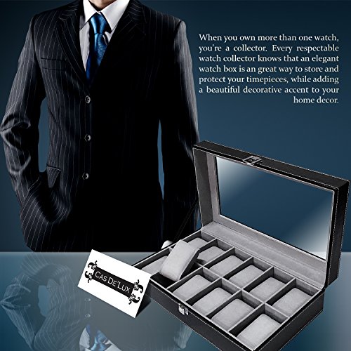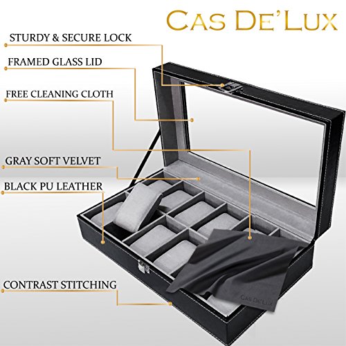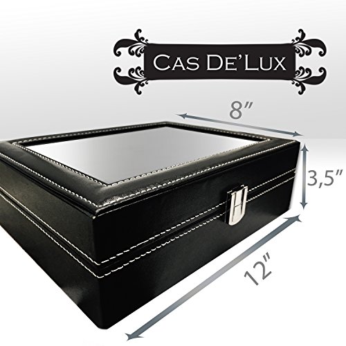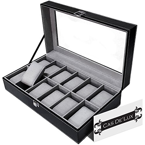 Cas De` Lux Luxury Watch Box with glass lid and Lock, 12 Slots