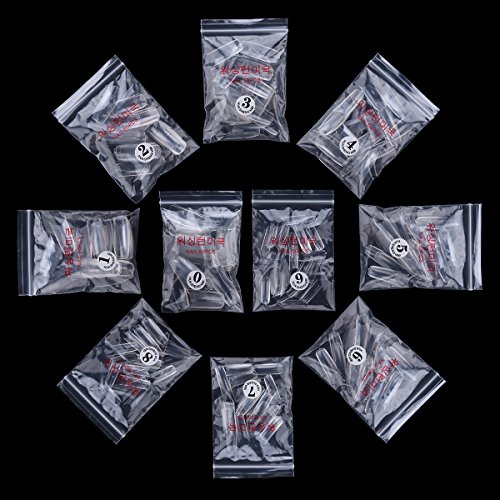 Studio : Makartt Publisher : Makartt Binding : Misc. Product Description Makartt 500pcs Clear Well Less False Nail Art Nails is a terrific set of fake nails that offers 10 different sizes with 50 nails of each size which fits most fingers. The nails have a nice curve at the tip, like the letter"U", super suit for Halloween, Christmas, weekend dating and any party! They are very strong and durable to last about 2 weeks, you can normally work using your nails. Easy to work with paint. Once painted with nail polish and glue, the nails look very natural, magical, stylish and fadeless. Further, owing to the perfect length and thickness, these clear half well nail art tips are easy to cut, file and apply, making your nail tips more beautiful and fashionable. Flawless fit, No bubbles, Scratch resistant, Smooth surface, they are great gift for mother, sisters, daughter or girlfriend who love manicure, suitable for nail salons and diy nail art at home. Features: Color: Clear Material: ABS Shape: Well Less Net weight: 65 g/0.14 Ib Package: Retail package 500 PCS with pre-number bag Size: 10 size, 50 tips each size, 500pcs totally Detail size information(Length * Width), please allow 0.04 inch difference due to manual measurement: NO.0: 1.18 * 0.59 * 0.47 inch; NO.5: 0.98 * 0.39 * 0.31 inch NO.1: 1.16 * 0.55 * 0.39 inch; NO.6: 0.94 *0.39 * 0.31 inch NO.2: 1.10 * 0.51 * 0.39 inch; NO.7: 0.88 *0.35 * 0.28 inch NO.3: 1.02 * 0.43 * 0.35 inch; NO.8: 0.87 *0.31 * 0.24 inch NO.4: 0.87 * 0.43 * 0.33 inch; NO.9: 0.83 *0.28 * 0.24 inch Application: 1.File the sides and cuticle area for an accurate fit with manicure stick; 2.Clean nails of any polish oil with acetone-based polish remover; 3.Select the correct size nails for each finger; 4.Apply glue to nails; 5.Apply thin layer of glue to nails; 6.Starting at cuticle, press on hold for 5 seconds; 7.File and shape your new nails if needed.