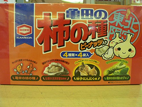 4종류×4 포들어감카메다의 카키노타네고, 굴의 해변의 모래밭 구이 간장 맛,다츠코 마늘 맛,카메다의 카키노타네고추냉이 맛