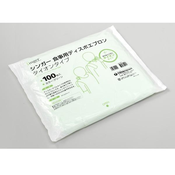 ディスポーザブルタイプの経済的な食事用エプロンです。首の後ろで軽く結ぶことで首回りにぴったりフィットし、衣類への汚れの付着を防ぎます。 製造国:中国 素材・材質:ポリエチレン 商品サイズ:平置き時:縦103×横60cm(1枚あたり) ※サプライヤー直送品 ご注文後2~3営業日後の出荷となります【商品名】宇都宮製作 シンガー食事用ディスポエプロン タイオンタイプ 緑 (フリーサイズ) 100枚入