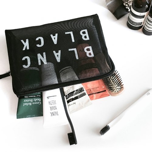 블랑블랙(BLANCBLACK) [블랑블랙] 로고 프린팅 메쉬 파우치 L [Black]