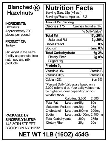 -. Title : Sincerely Nuts Blanched Hazelnuts (Filberts) Raw No Shell - Irresistibly Fresh and Delicious- Bursting with Health - Kosher