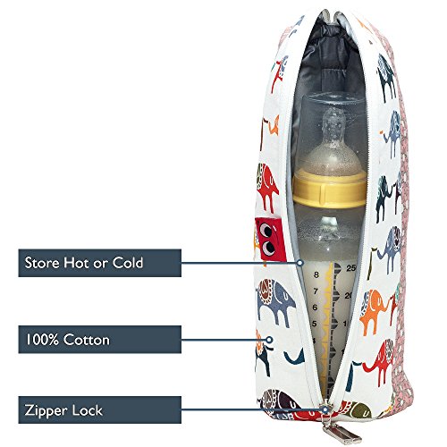 Aryko Baby Bottle Bag Warmer or Cooler Insulated | Travel Carrier Portable Holder Tote Breast milk Storage with Pacifier Orange Dia Leaves Pouch Limited Edition -Indian Elephant