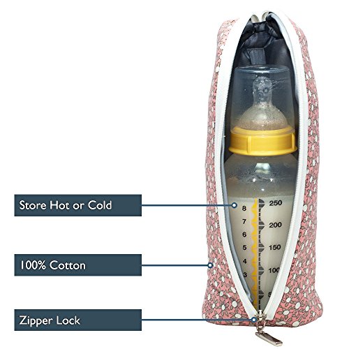 Aryko Baby Bottle Bag Warmer or Cooler Insulated | Travel Carrier Portable Holder Tote Breast milk Storage with Pacifier Pouch Limited Edition - Flower Garden
