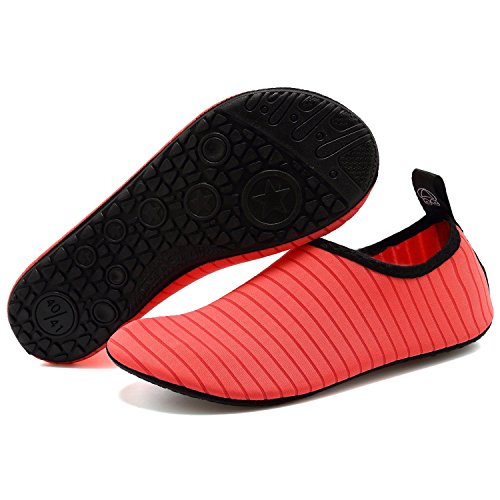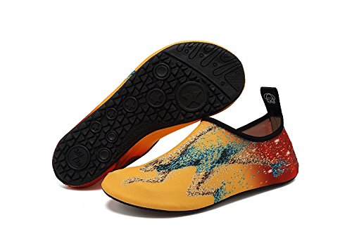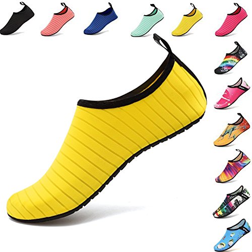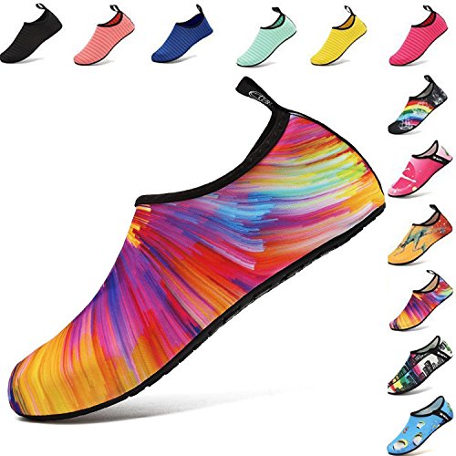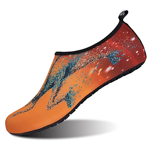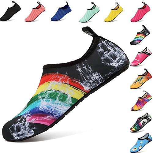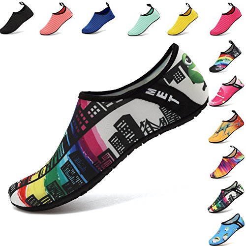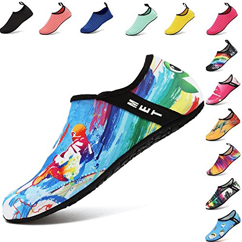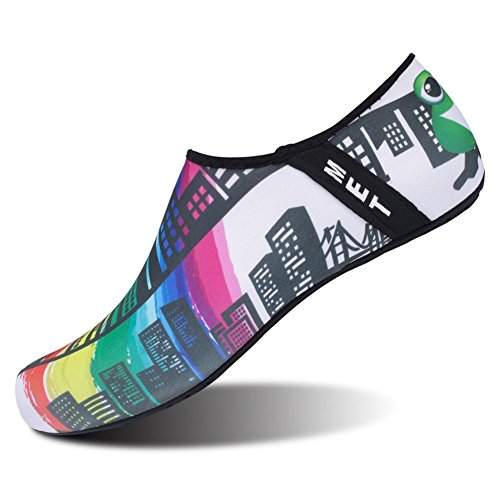 Binding : Apparel Product Description SIZE CHART: US Toddler 13M= Insole Length 6.85in = EU 28-29 US Little Kid 1-1.5M= Insole Length 7.21in = EU 30-31 US Little Kid 2-3M= Insole Length 7.63in = EU 32-33 US Women:3.5-4 = Insole Length 8.03in = EU 34-35 US Women:5.5-6.5/Men:5-5.5M = Insole Length 8.46in = EU 36-37 US Women:7.5-8.5/Men:6-7 = Insole Length 9.17in = EU 38-39 US Women:9.5-10.5/Men:7.5-8.5 = Insole Length 9.69in = EU 40-41 US Women:11-12/Men:9.5-10.5 = Insole Length 10.20in = EU 42-43 US Women:12.5-13/Men:11-11.5 = Insole Length 10.71in = EU 44-45 NEWCOSPLAY Water Sports Shoes Barefoot Quick-dry Aqua Socks Slip-on for Men Women Girls boys Quick-dry water shoes. High quality rubber with thick foam arch-support inside of them. Flexible but sturdy enough to protect your feet from stepping on rock and stone. ---------------------------------------------- NEWCOSPLAY ANTI-SLIP OUTSOLE: The anti-slip rubber sole, with an ergonomically molded, shock absorption performance cushioning separated protective toe guard. ---------------------------------------------- NEWCOSPLAY Water Sports Shoes Barefoot Quick-dry Aqua Socks Slip-on for Men Women Kids 1.NEWCOSPLAY aqua socks are lightweight. Perfect Fit and Soft: material do water activities comfortably. 2.NEWCOSPLAY quick-dry water shoes, breathable and smooth fabrics with fine stretch on uppers. These shoes are designing multiple patterns and colors to meet different people's taste. 3.OCCASION:Beach, swimming, pool, weight training, wake-boarding, sailing, boating, cycling, jogging, walking, fishing, beach volleyball, gardening, lawn, car-washing and driving, surf, scuba, snorkeling, beach walking, yoga, weatherboarding, kayaking, windsurfing, fin socks, shower, bathroom and etc ------------------------------------------------ 0