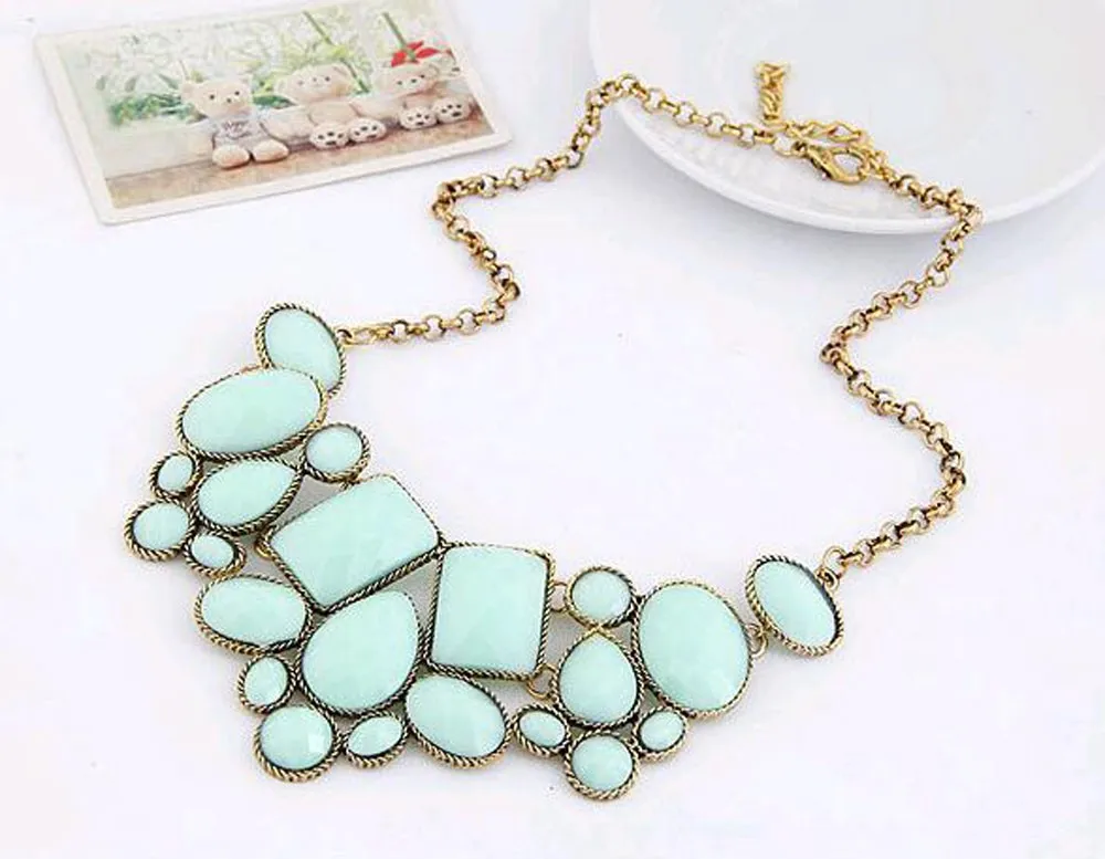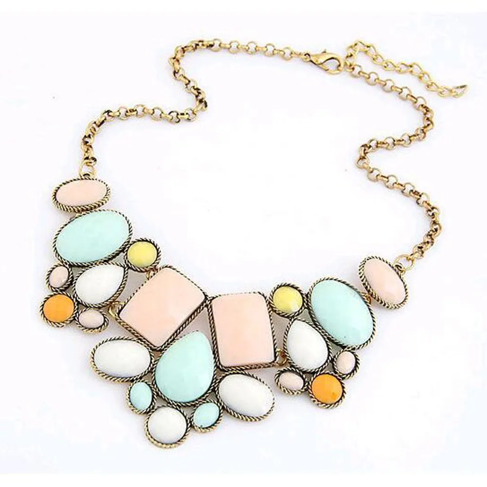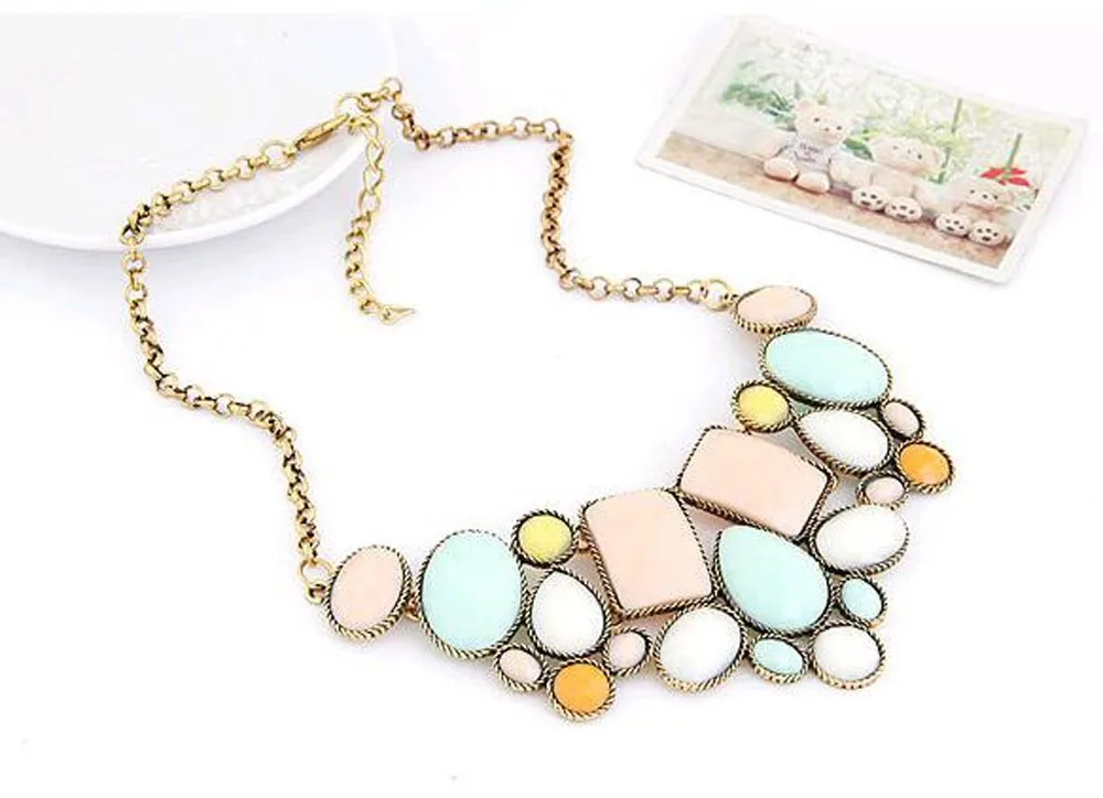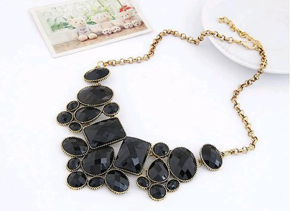 European and American fashion new hot metal exaggeration luxurious colorful geometric polygon temperament short payment chain ossicular chain