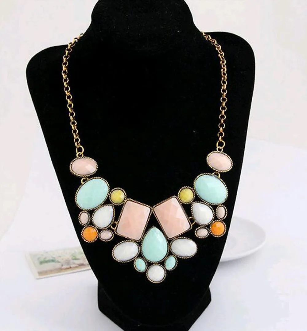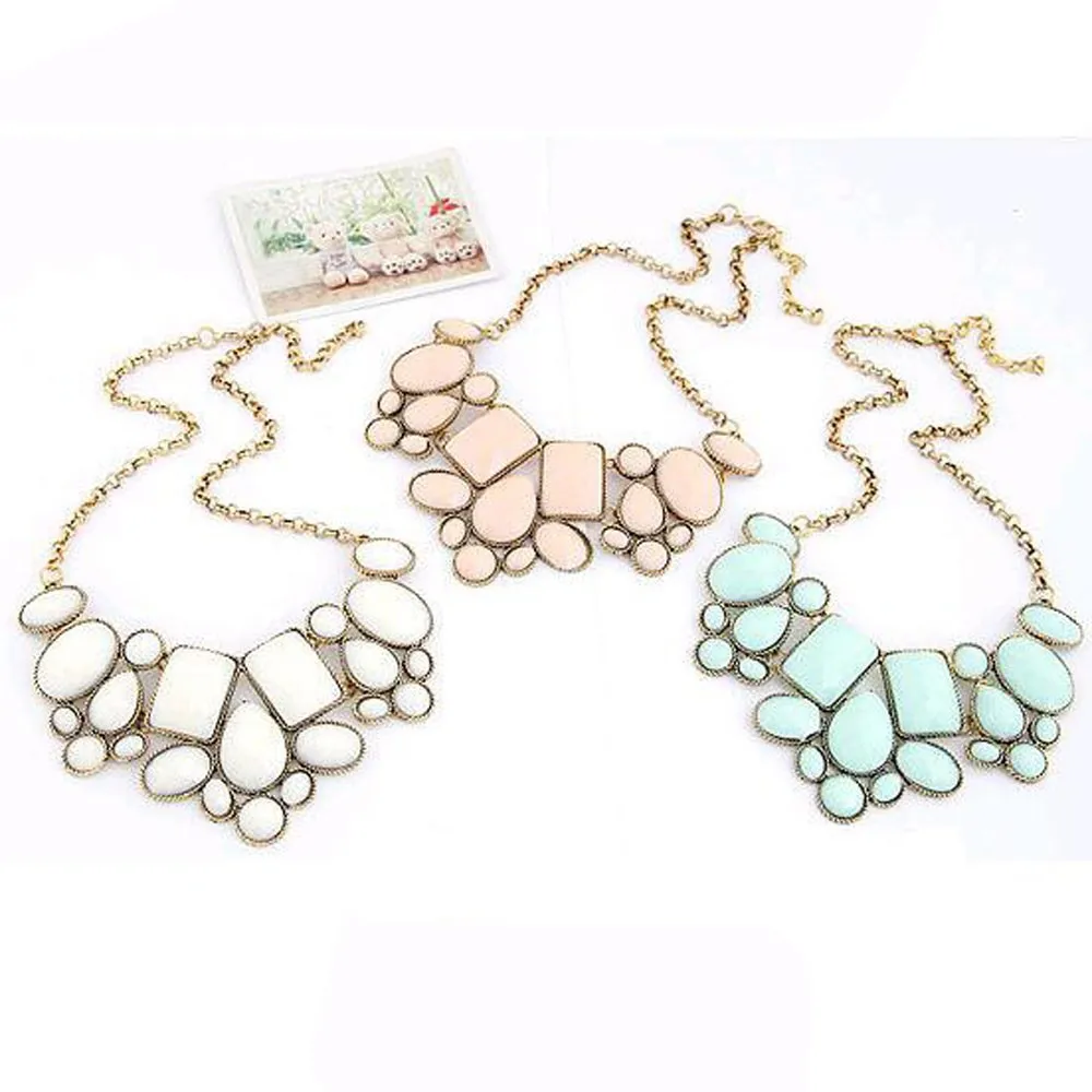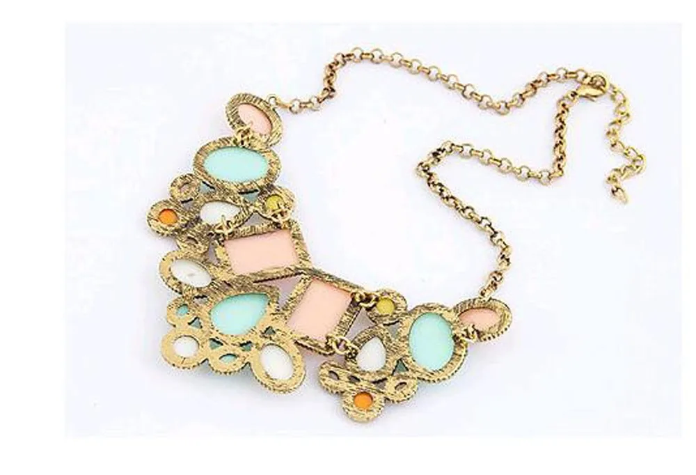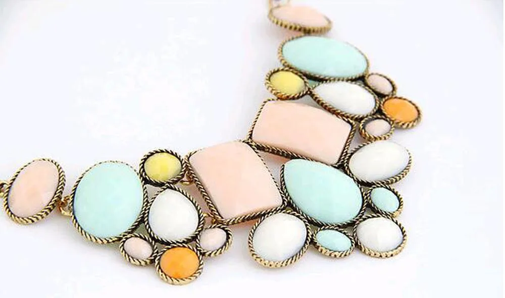 European and American fashion new hot metal exaggeration luxurious colorful geometric polygon temperament short payment chain ossicular chain