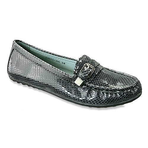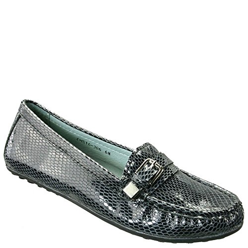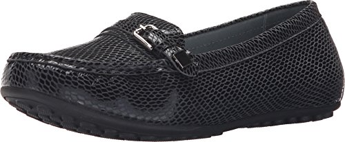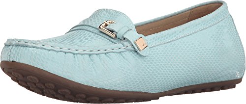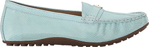 Features decorative metal buckle hardware at vamp. Easy slip-on style. Smooth and breathable leather linings. Removable, leather-lined foobed features perforations at forefoot for added breathability and generous cushioning for all-day comfort. Durable and flexible rubber outsole. Imported.