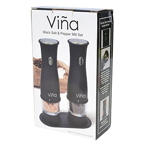 Vina salt and pepper grinder set uses 100% ceramic grinders, so they will never wear out. Looks great on your countertop or dining room table! Measures: 8.2" tall by 2.2" wide and maximum capacity for the salt: 65g / 2.3 oz; Whole black pepper: 33g/1.16 oz