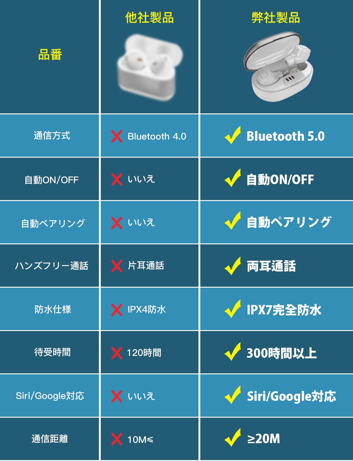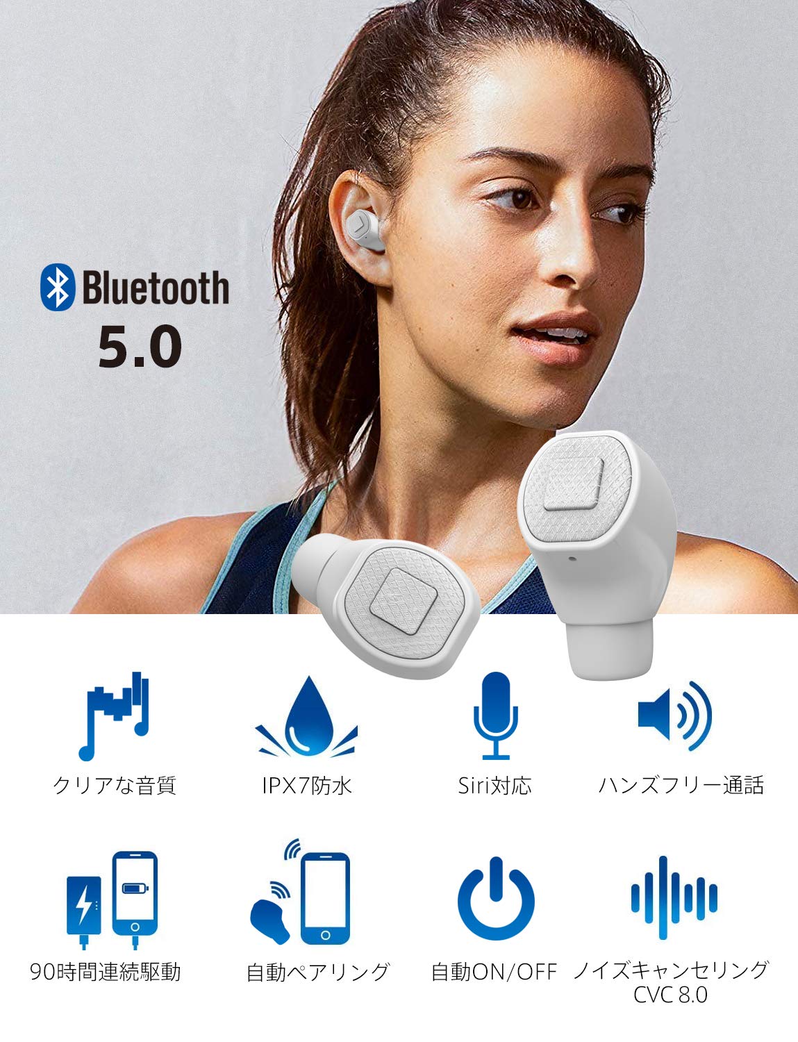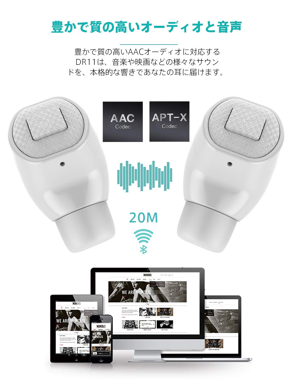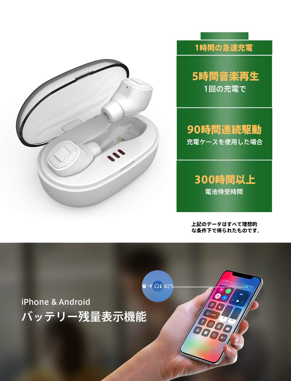 ❶TWS完全ワイヤレスイヤホン、左右分離型 ❷世界で最も先進的なBluetooth 5.0