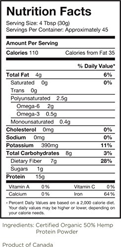 High Concentration - Our hemp protein provides 15g of easily digested and highly absorbed vegetarian protein per serving, concentrated at 50% with just the right amount of fiber to help fulfill dietary needs.