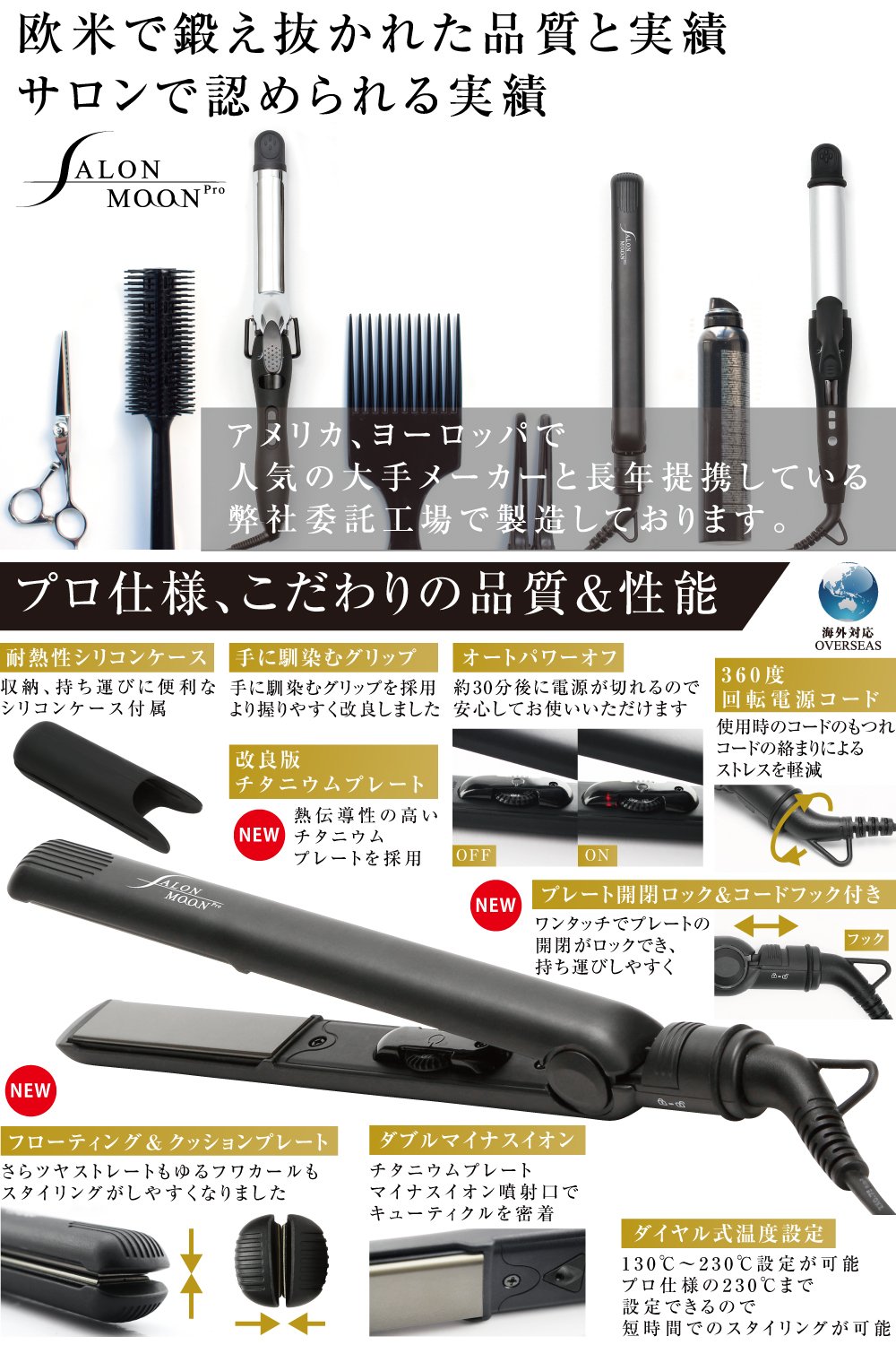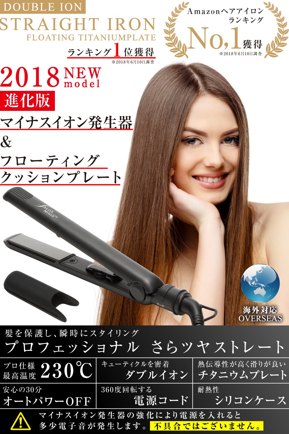 - 2018 進化版 NEW MODEL 】2017年人気を博した ダブル マイナスイオン ストレートアイロン の進化版 ✅ SALONMOON オリジナル 改良版プレートによってストレートだけでなく そとはね ゆる巻き カール も可能な2way仕様のヘアアイロンです