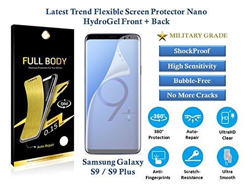 -. Title : Nano HydroGeL Samsung Galaxy S9/Plus [Military Grade] Screen Protector Film HD [Front & Back] Flexible TPU Clear Not Tempered Glass [Self Heal][Shockproof][Bubble Free][3D Perfect Fit]