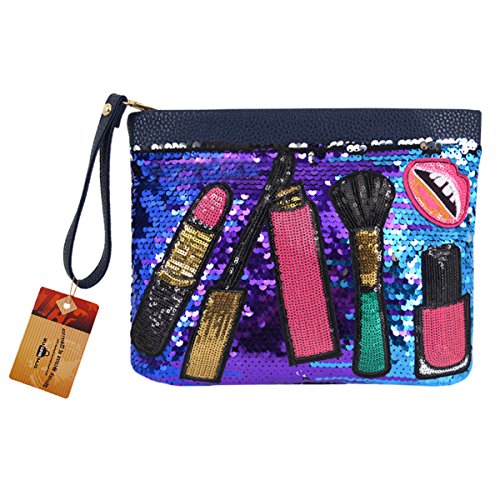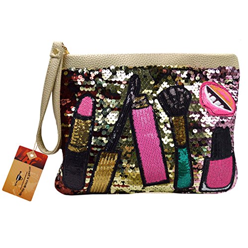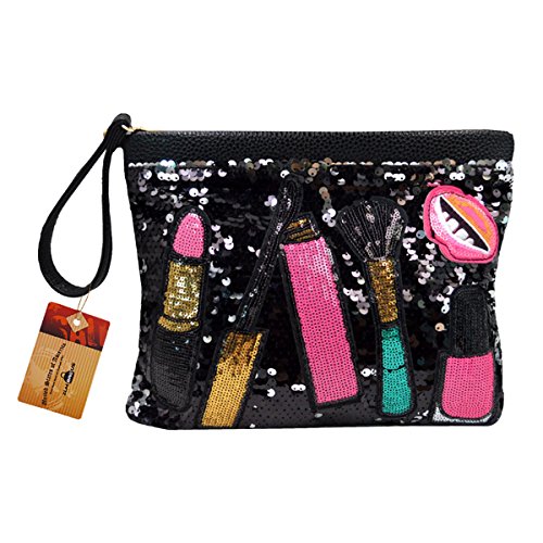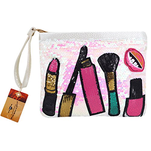 Features with the fancy sequin design, chic and dazzling, makes you the focal spot in the crowd; the lovely patch work, lipstick, mouth, nail polish stickers, add brightness and sweetness to the bag; contrast color design, white, blue, black, gold, all are gorgeous and worth to try