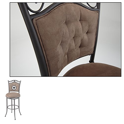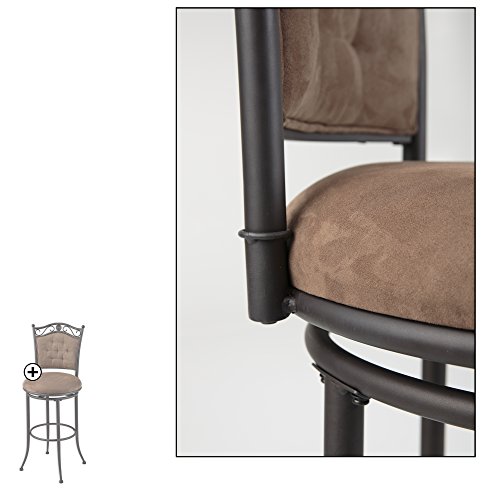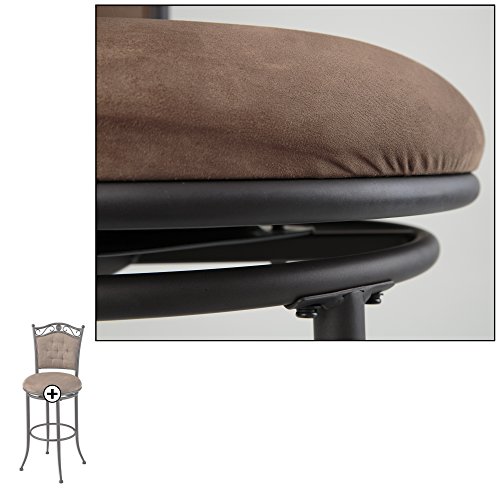 -. Brand : Fashion Bed Group -. Feature : Seat height: 30 in.; Dimensions: 18W x 19.63D x 45.5H in. / Seat width: 18 in. / Sturdy metal frame with seat upholstered with microfiber / Umber finish / Victorian-inspired transitional style -. Label : Fashion Bed Group -. Manufacturer : Fashion Bed Group -. MPN : C1X010 -. PackageQuantity : 1 -. PartNumber : C1X010 -. ProductGroup : Furniture -. ProductTypeName : HOME_FURNITURE_AND_DECOR -. Publisher : Fashion Bed Group -. Studio : Fashion Bed Group -. Title : Fashion Bed Group Helena 30 in. Swivel Bar Stool - Umber
