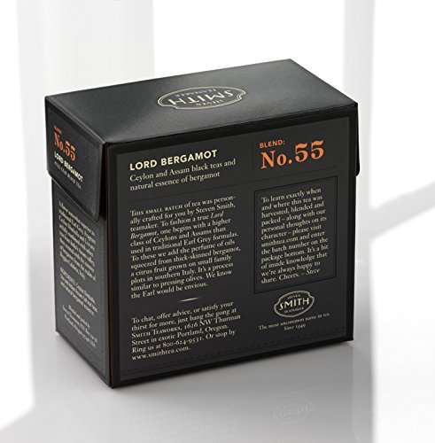 -. Binding : Grocery -. Brand : Smith -. EAN : 0853072002447 -. Feature : Ceylon Dimbulla, Uva and Indian Assam full leaf teas and natural bergamot flavor / A flavor somewhat superior to traditional Earl Grey / For best flavor, bring freshly drawn filtered water to a boil and steep five minutes -. IsAdultProduct : 0 -. Label : KeHE Distributors -. LegalDisclaimer : Actual product packaging and materials may contain more and different information than what is shown on our website. We recommend that you do not rely solely on the information presented and that you always read labels, warnings, and directions before using or consuming a product. Please see our full disclaimer below. -. Manufacturer : KeHE Distributors -. Model : 21144 -. MPN : 21144 -. NumberOfItems : 1 -. PackageQuantity : 1 -. PartNumber : 21144 -. ProductGroup : Grocery -. ProductTypeName : GROCERY -. PublicationDate : 2012-04-26 -. Publisher : KeHE Distributors -. Size : 15 -. Studio : KeHE Distributors -. Title : Smith Tea, Lord Bergamot, 15-Count -. UPC : 400008098892