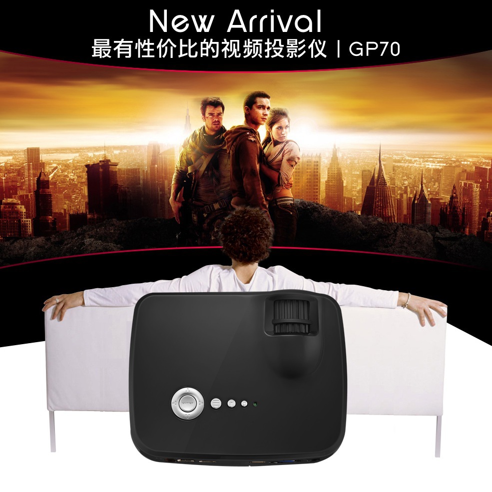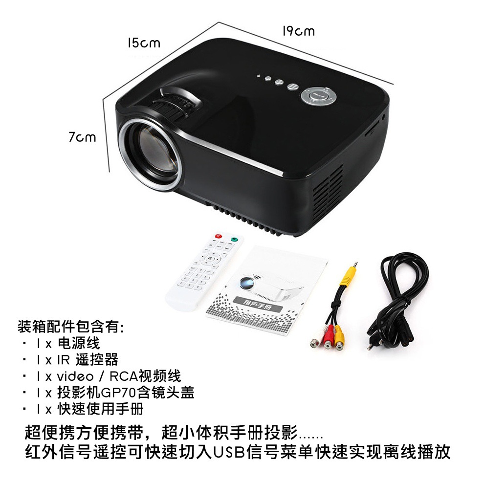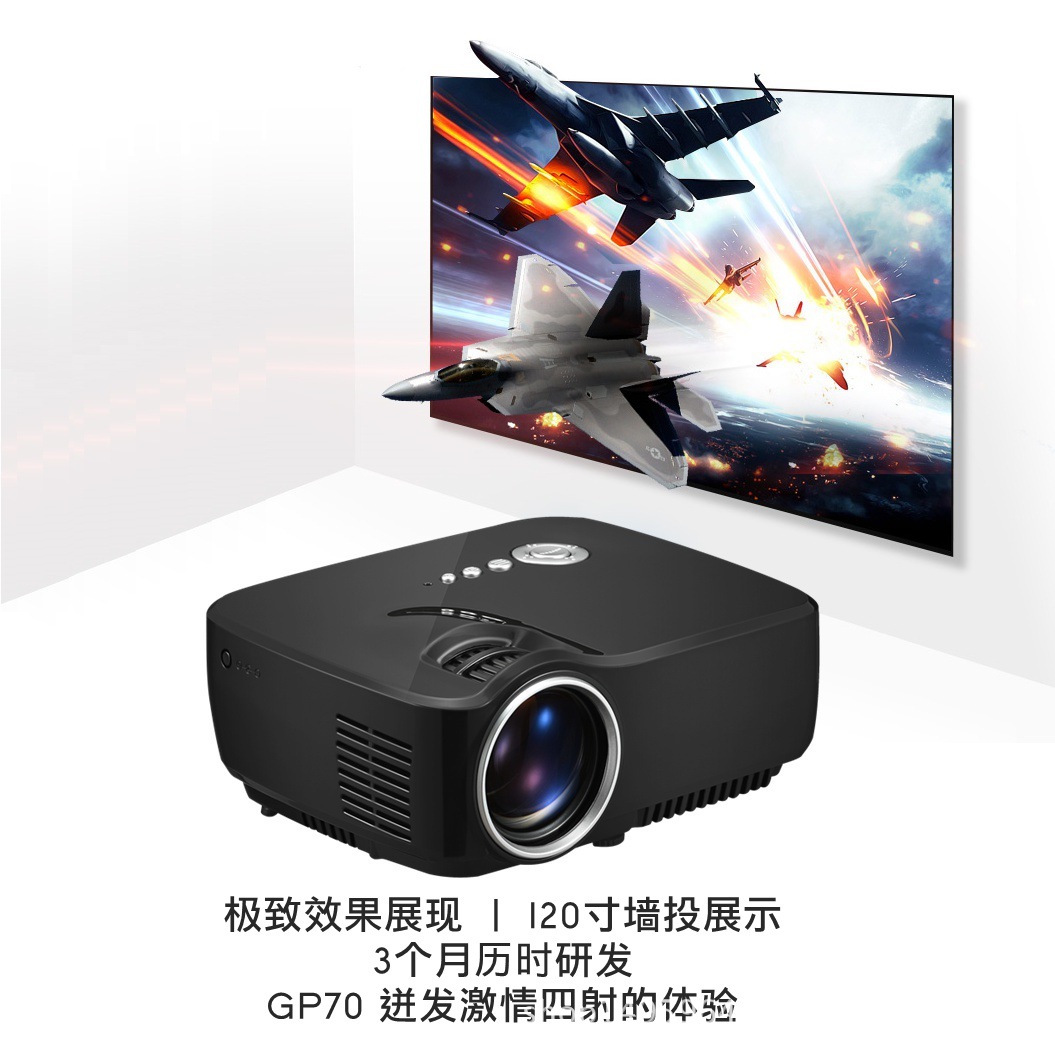新款GP70微型LED投影仪 电脑家用高清1080P便携式迷你投影机 自带喇叭