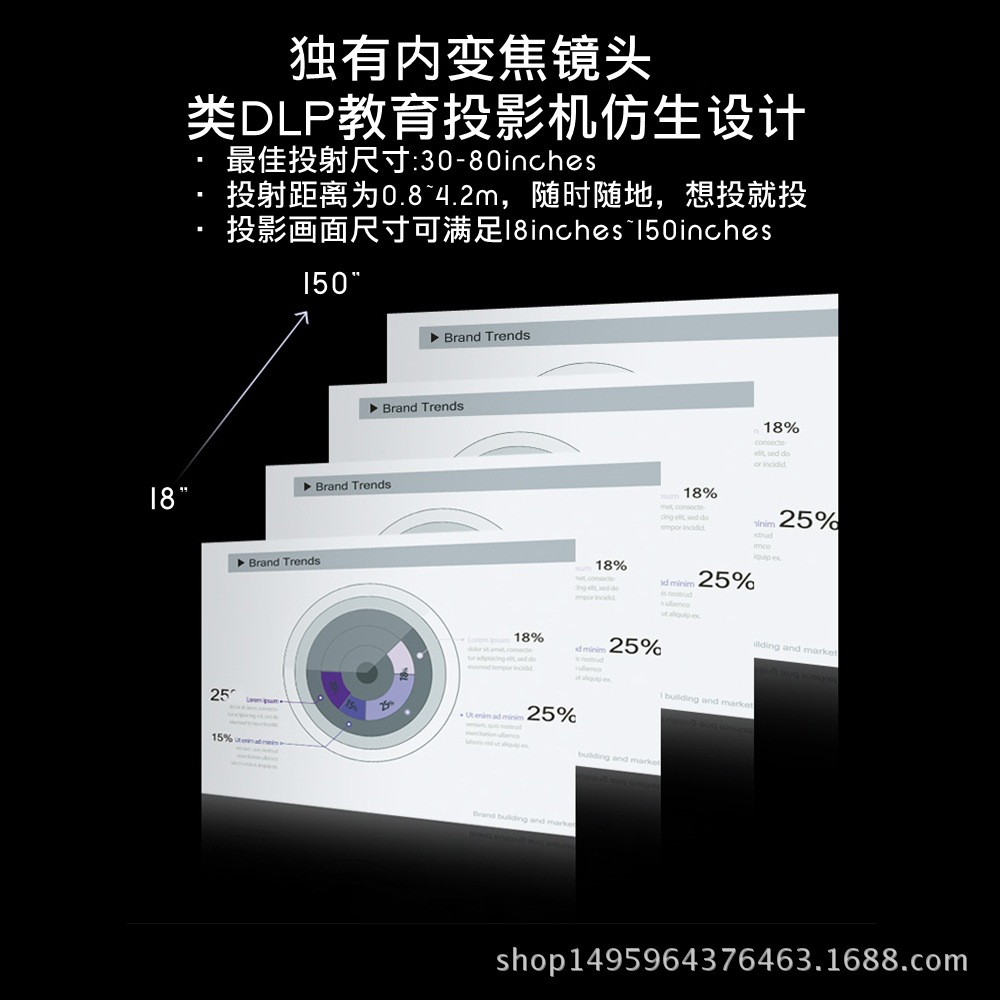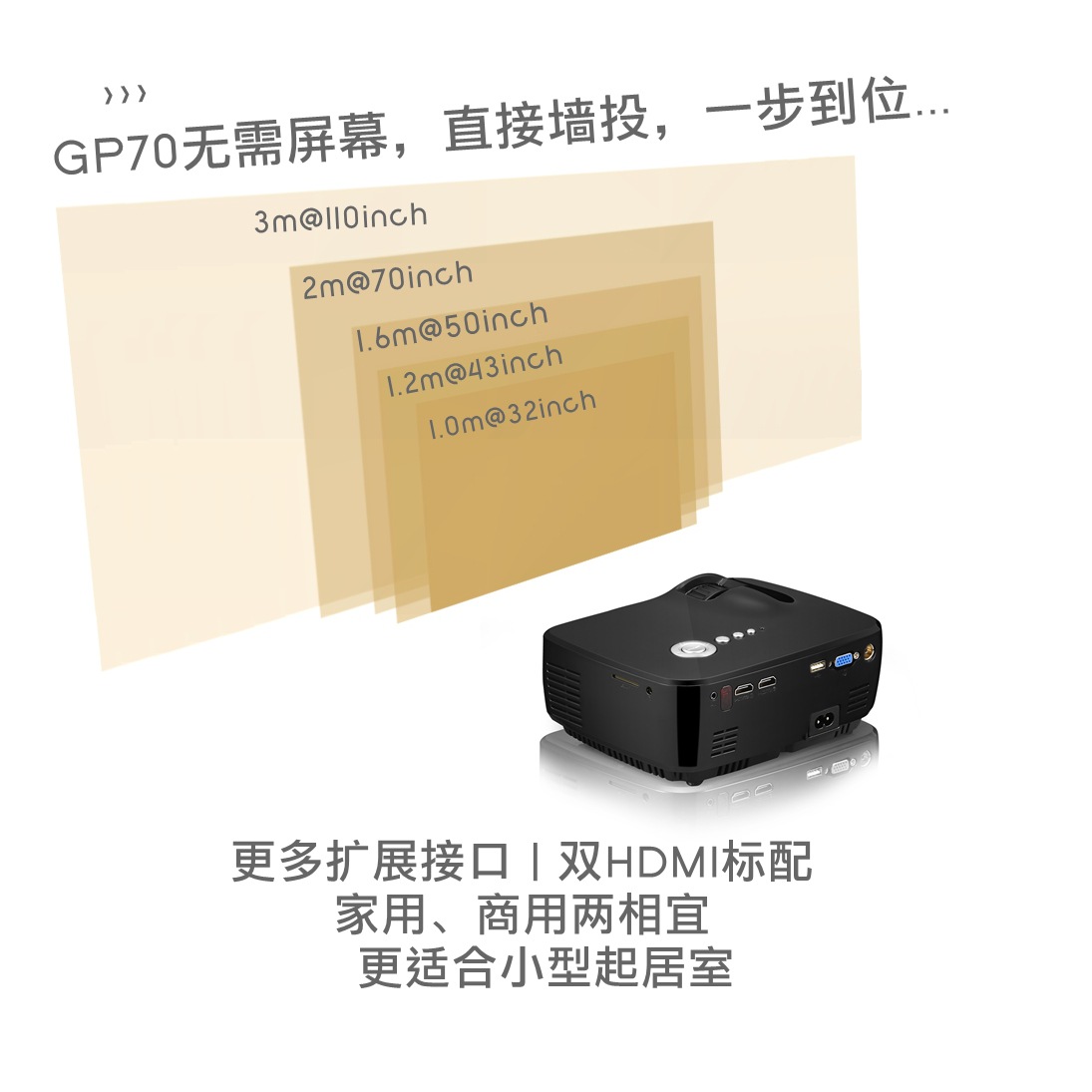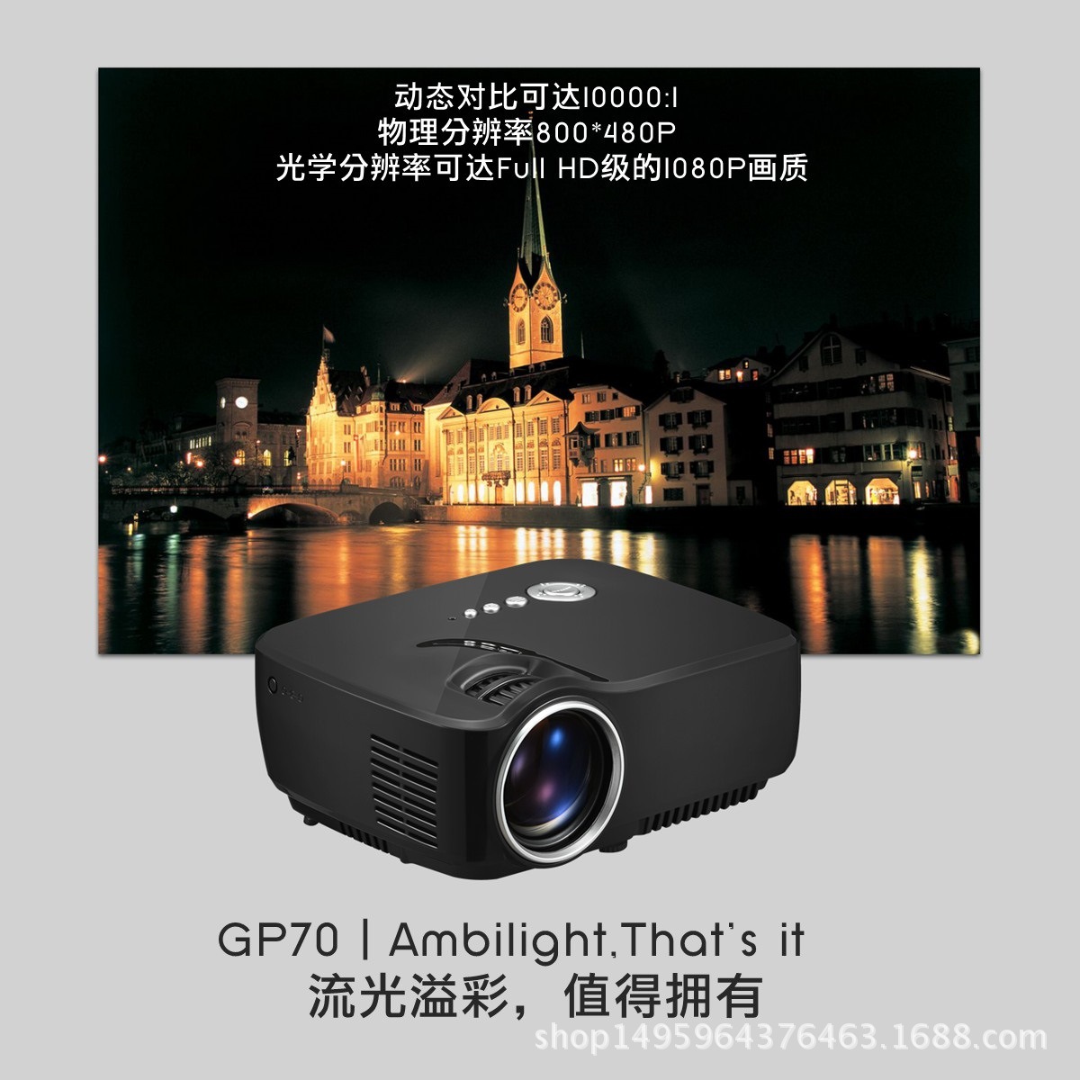 新款GP70微型LED投影仪 电脑家用高清1080P便携式迷你投影机 自带喇叭