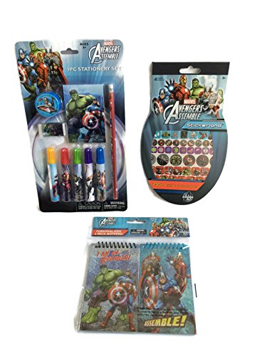 - One Avengers 9pc Stationary Set, One Iron Man Air Glider, One Two Pack Avengers Notebook, Plus one Pack of Valentines Themed Tissue Paper