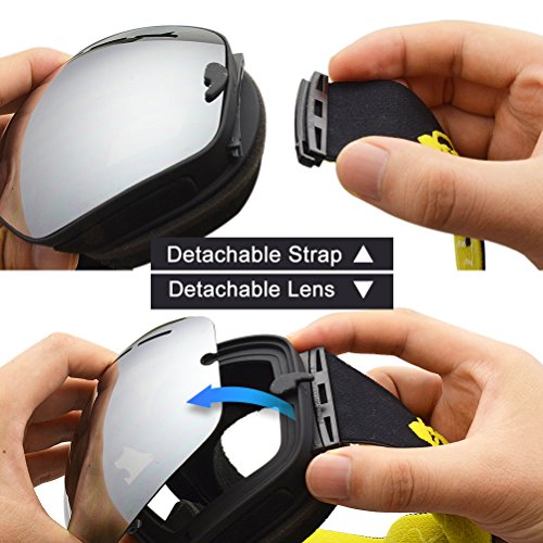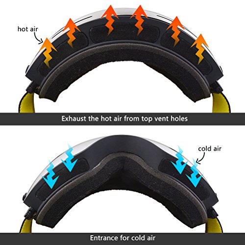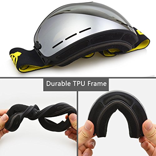 UV400 Protection and Anti-fog - Featured with special 100% UV400 protection and anti-fog coating. Yakaon snow goggles ensure skiers have a clean vision on all way on slope.