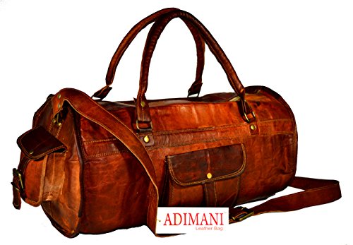 -. Binding : Electronics -. Brand : ADIMANI -. Color : brown -. Feature : Gym and Travel Classic retro style bag.This bag has enough room for your Cloths stuff and other essentials. Leave an impression on your colleagues and your friends by this classic unisex bag. / Carry your attitude on your sleeve with this stylish retro leather messenger bag. Handcrafted skillfully with three internal compartments and canvas lining inside, this compact bag manages to give you your bit of space without missing out on style which speaks volumes. Worked with genuine leather, this timeless bag proves to be your answer to wrinkles and everyday questions. / Please note that since this is original leather bag it comes with a distinct smell which fades away after 3-4 weeks of regular use. / Also the leather might feel a bit stiff in the starting but it loosens out with usage. / Only the seller "ADIMANI" has the rights to sell the "ADIMANI" brand of products in the US. Please check the seller name while checking out! -. Label : ADIMANI -. Manufacturer : ADIMANI -. Model : ALB000190 -. MPN : A190 -. PartNumber : A190 -. ProductGroup : PC Accessory -. ProductTypeName : CARRYING_CASE_OR_BAG -. Publisher : ADIMANI -. Studio : ADIMANI -. Title : ADIMANI Vintage Handmade Leather Gym and Travel Bag with Size 18 inchs