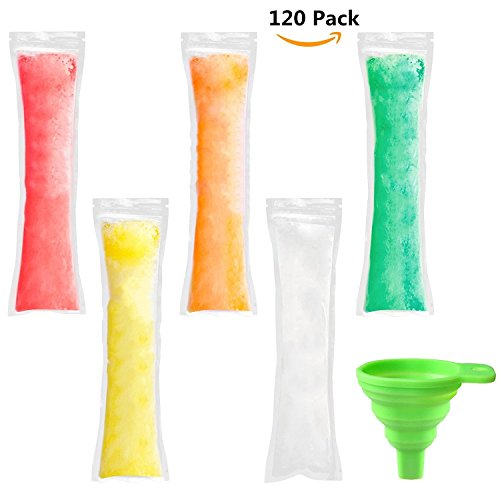 Ice Popsicle Mold Bags with Kitchen Funnel 2 x 11"DIY Ice Pop Mold Bags for Yogurt and Ice Candy , Otter Pops or Freeze Pops, BPA Free and FDA Approved,120 Pack