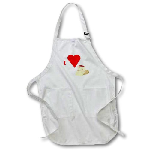 3dRose apr_60657_1 Love Cheese-Full Length White Apron with Pockets, 22 by 30-Inch