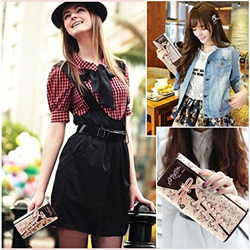 This adorable wallet by INDRESSME showcases beautiful Bow Heart print.The wallet is crafted from polyurethane foam(faux leather) and secures with a magnetic snap button.Features include 11 card slots,2 ID holders, 5 full length slit cash pockets,1 zip coin pocket.
