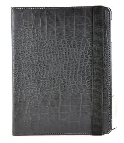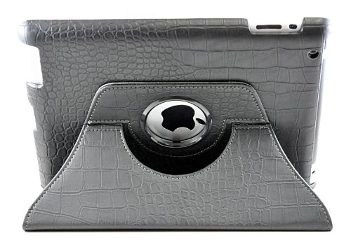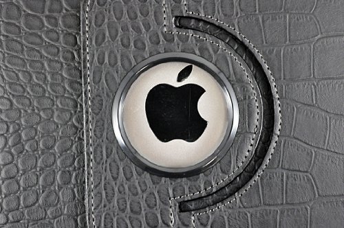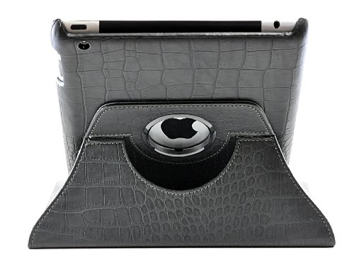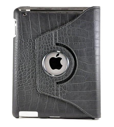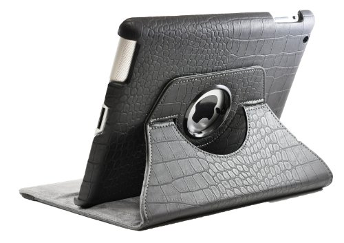 LiViTech(TM) Crocodile Alligator Premium Luxury Leather Design 360 Degrees Rotating Stand Cover for Apple iPad 4 3 2 (Black)