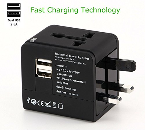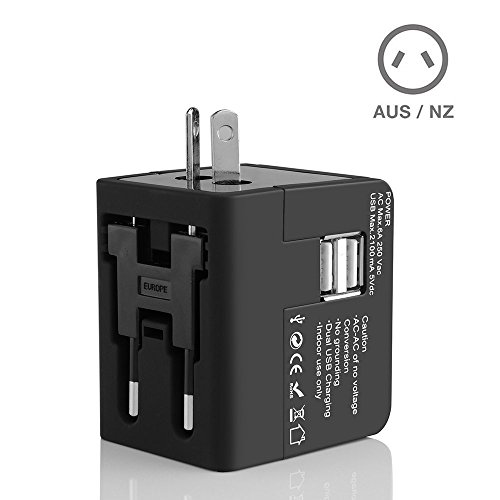 This Universal Dual USB AC Adapter keeps your devices (such as your iPad, iPhone, iPod, HTC, Blackberry, MP3 Players, Digital Cameras, PDAs, Smart Mobile Phones) charged wherever you go for traveling. Four different standard plugs (US/EU/AU/UK) cover United States, Canada, Europe, Middle East, South America, Asia, The Caribbean, Great Britain, Ireland, Africa, Hong Kong, Singapore, Australia, Fiji, New Zealand, China, Japan, and more than 150 countries.