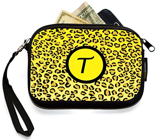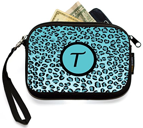 -. Title : UKBK Letter "T" Initial Sky Blue Leopard P.R.Int Monogrammed - Neoprene Clutch Wristlet with Safety Closure - Ideal case for Camera, Cell Phone, Gameboy, Passport, Cosmetics case, Universal Cell Phone Case etc..