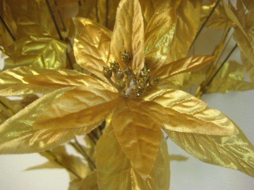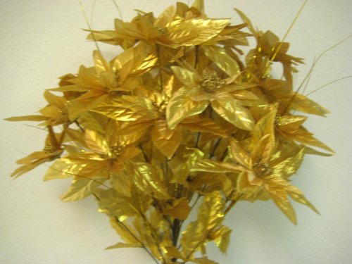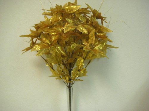 GOLD Christmas Poinsettia Bush 24 Artificial Silk Flowers 24" Bouquet 024GD