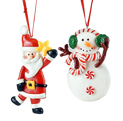 Santa Claus & Snowman Claydough Hanging Christmas Ornaments - Set of 2