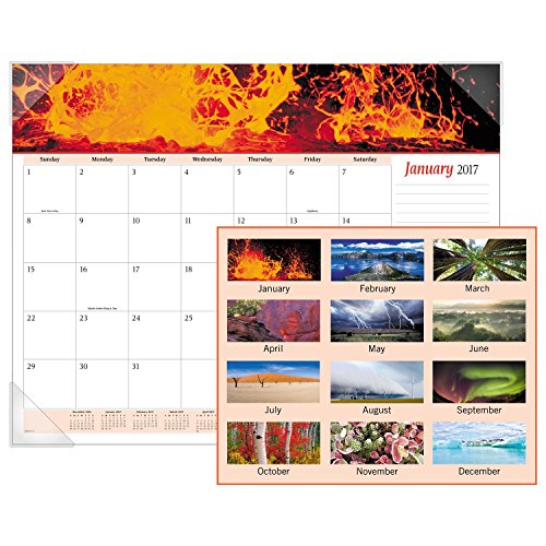-. Binding : Office Product -. Brand : At-A-Glance -. EAN : 0038576336476 -. Feature : Nature desk pad calendar features full color photos and runs 12 months from January - December / One month per page with lined notes space and full year calendar reference / Current and future yearly reference calendars and Dates to Remember bonus pages included / Durable backboard provides a sturdy writing surface for notes and four poly corners keep pages flat / P.R.Inted on quality paper containing 30% post-consumer waste. 22" x 17" page size. Block Size: 2 3/16" x 2.25 in. -. Label : ACCO Brands -. Manufacturer : ACCO Brands -. Model : DMD17032 -. MPN : DMD17032 -. NumberOfItems : 1 -. PackageQuantity : 1 -. PartNumber : DMD17032 -. ProductGroup : Office Product -. ProductTypeName : OFFICE_PRODUCTS -. Publisher : ACCO Brands -. Studio : ACCO Brands -. Title : AT-A-GLANCE Desk Pad Calendar 2017, Monthly, 21-5/8 x 16-7/8", Nature (DMD17032) -. UPC : 038576336476