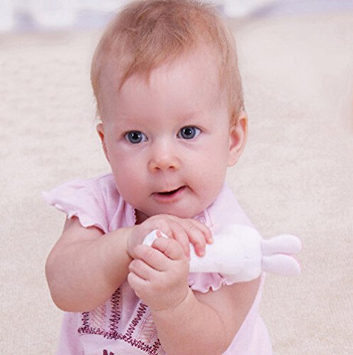HIGH QUALITY: Baby Rattle Set including 2 pcs Soft Plush Pink Bunny Construction Rattle Baby Toys. Baby-friendly 100% knitted polyester inside and out, super soft teething surfaces, machine washable.