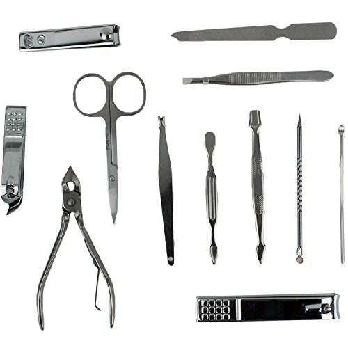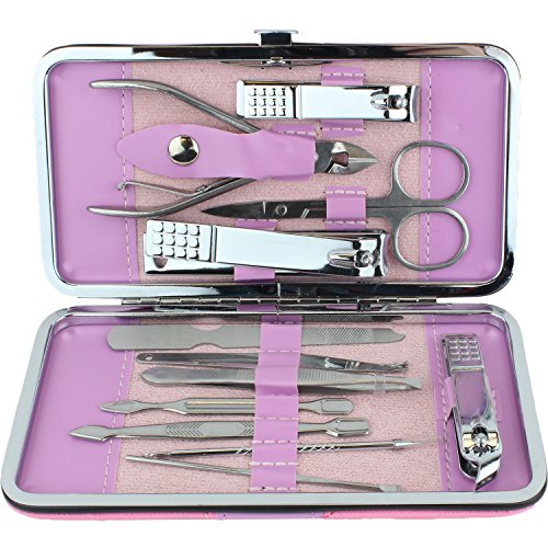 The perfect on-the-go travel manicure and pedicure set! All 12 pieces are made from durable stainless steel that will never rust and stored in the convenient pink organizer case. Keep it in your purse for a quick fix for your nails or stores easily in any cabinet, drawer or compartment. Makes a great holiday or birthday gift for any woman or teen girl! Set includes: Nail clipper, Cuticle clippers, Multi-purpose Scissors, Toe nail clipper, Diagonal nail clipper, Nail file, V-Shaped push stick, Eyebrow tweezers, Double-sided push stick, Peeling knife, Blackhead needle and loop remover, and Ear pick 0 |
