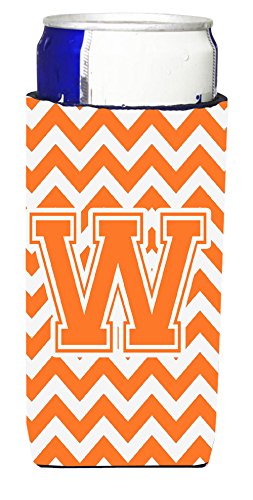 Letter W Chevron Orange and White Ultra Beverage Insulators for slim cans CJ1046-WMUK