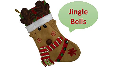 Christmas Stocking - Holiday Bells - Reindeer Stocking - Add Some Cheer With a Fun and Festive Reindeer 20" Christmas Holiday Stocking - Hanging Christmas Decorations